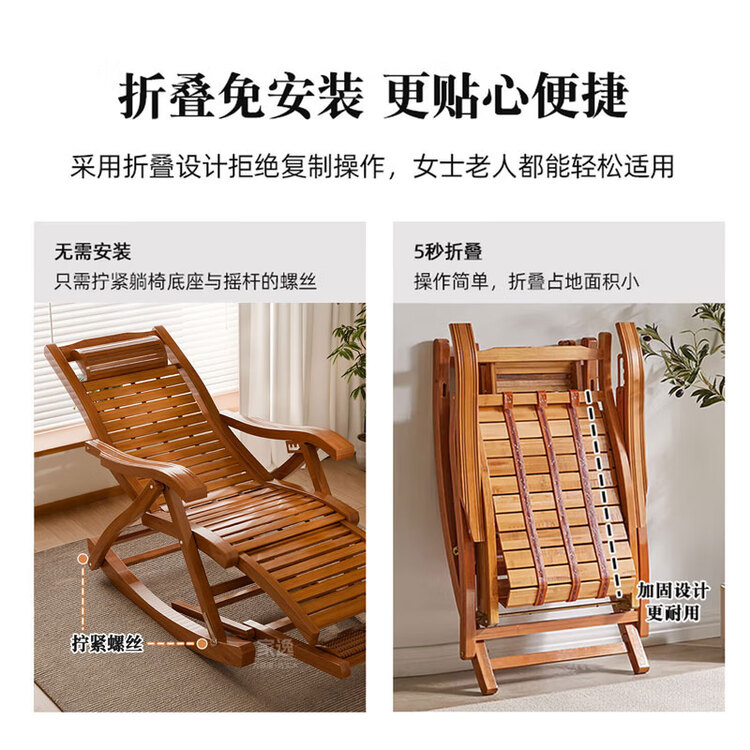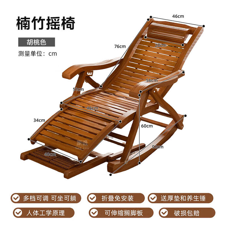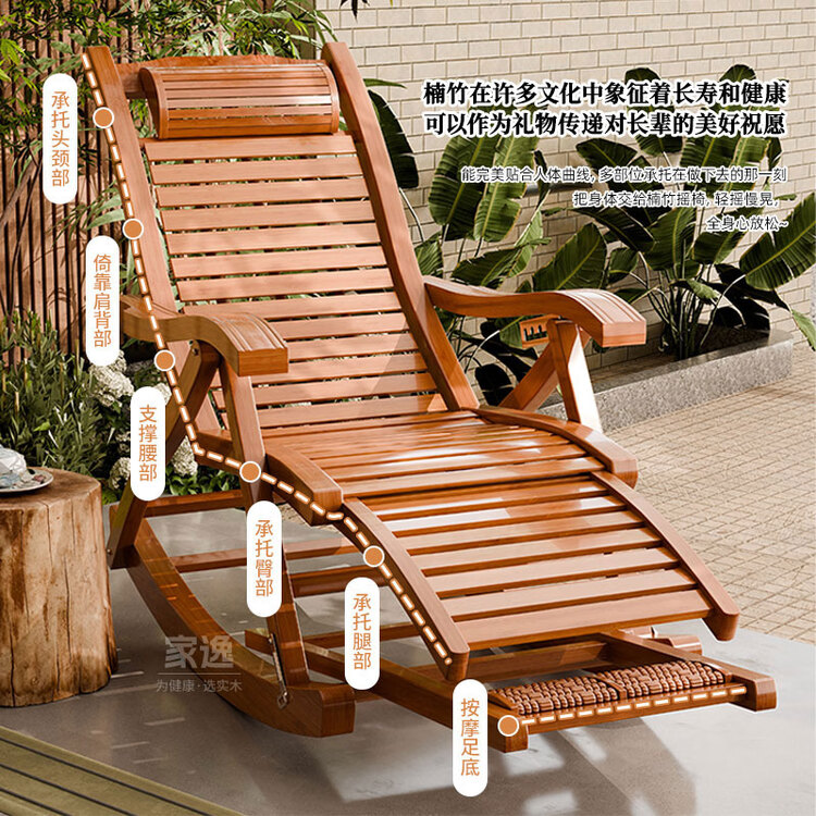 家逸躺椅阳台摇摇椅大人午休椅老人专用逍遥藤椅折叠懒人家用休闲一体